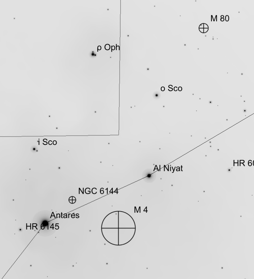 Closer to Antares is NGC 6144. Much smaller and fainter than M4 , it’s still visible with a small telescope.